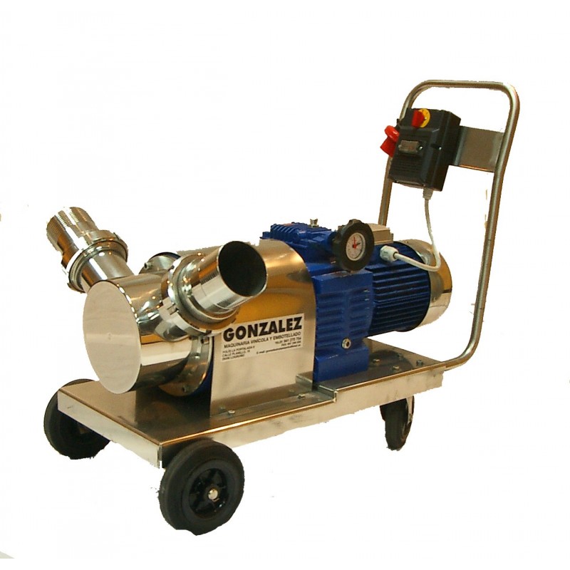 Bomba autoaspirante de rodete flexible con variador de velocidad completa de inversor de caudal y salva motor. Carro transportador, cuerpo de la bomba y eje en acero inox. Bomba trifásica.