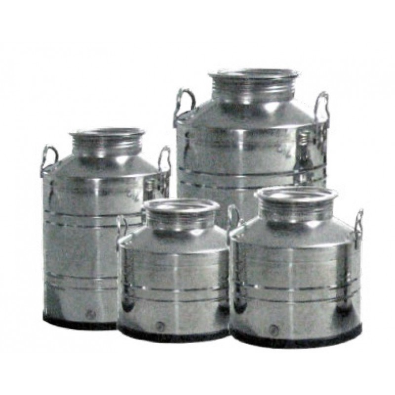 Depósito tipo lechera con asas construido en acero inox para guardar aceite. Completo de llave cromada y tapa con junta.