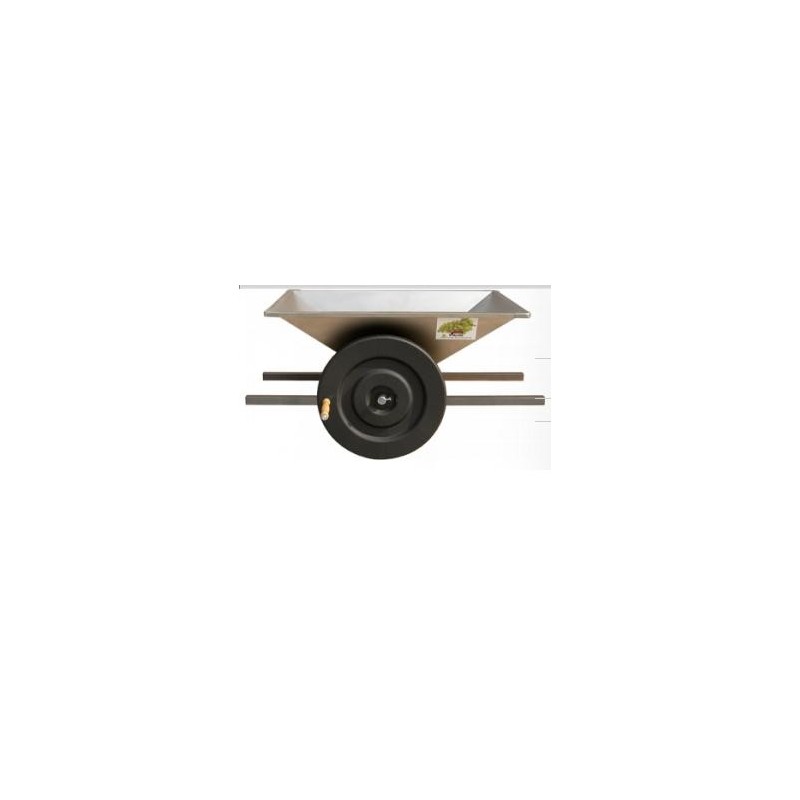 Estrujadora manual con amplia tolva para entrada de la uva. La máquina puede ser construida en hierro pintado de epoxy o en inox. Los rodillos son regulables en estrujado con el fin de permitir un mayor o menor estrujado de la uva. Producción: 800 kg/hora. Medidas: 950×600. Versión CEENORM (con pretolva que aumenta la altura de la máquina en 40cm. Visitar accesorios)